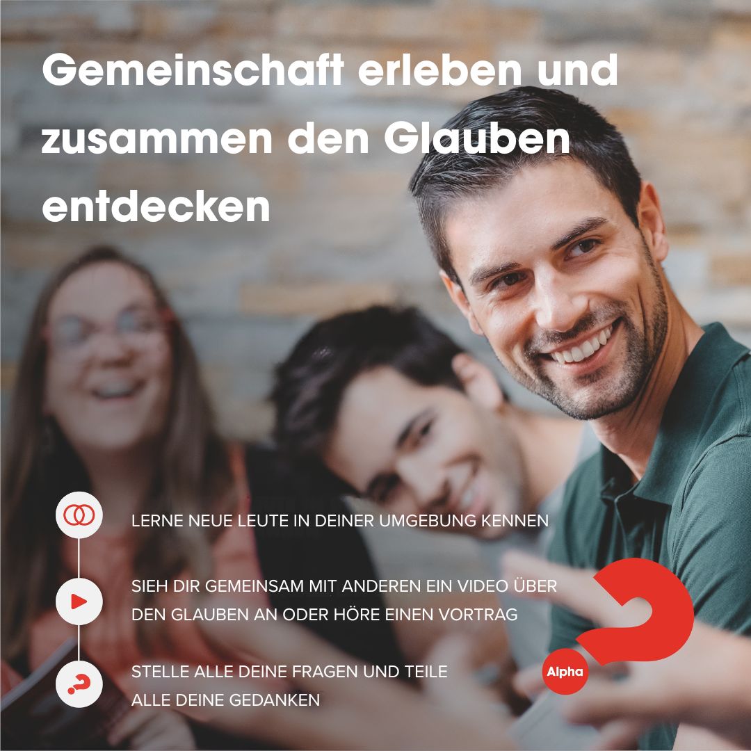 Alpha ist eine Reihe von Treffen in entspannter Atmosphäre. Bei jedem Treffen werden Fragen rund um das Leben und den christlichen Glauben thematisiert.