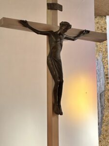 Im Gabengang brachten wir ein Seil als Zeichen unserer Verbundenheit, eine Latte als Symbol